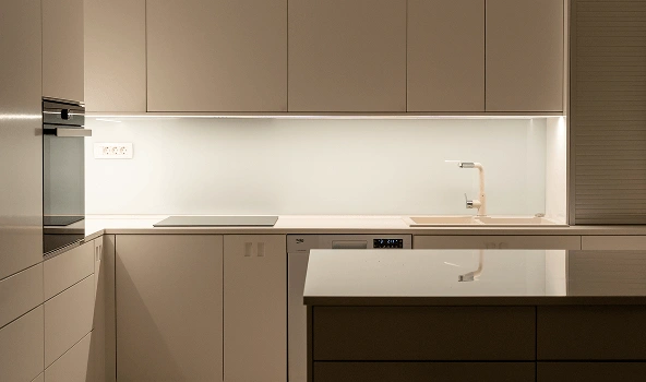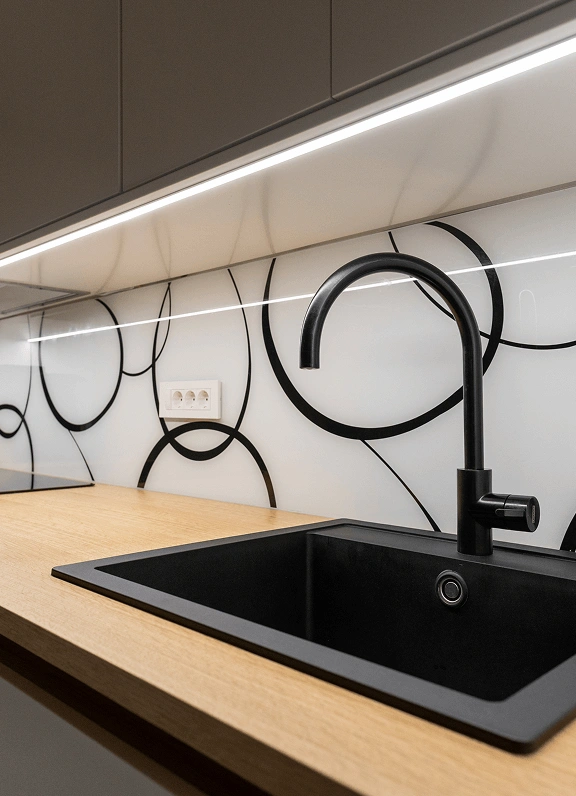 Global trends show that modern kitchens increasingly lean toward open-plan layouts, where work surfaces blend naturally with living areas — a vision we bring to life through thoughtful design. Whether minimalist or artistically styled, handles enhance the character of your kitchen, while LED lighting under counters or inside glass cabinets creates a warm, inviting atmosphere. Integrated drawer organizers and smart storage systems ensure that every utensil is within easy reach.