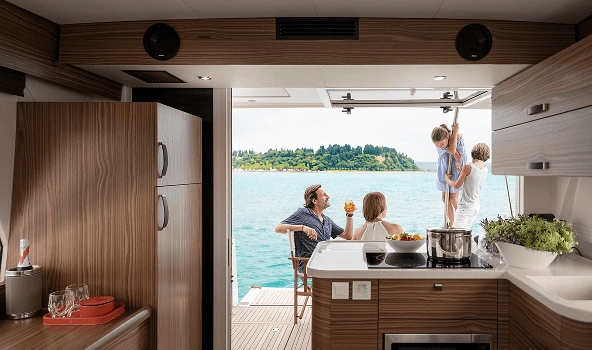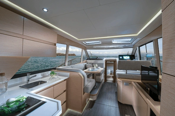 The result is a prestigious interior that embodies exceptional quality, long-lasting durability, and a true sense of comfort at sea.