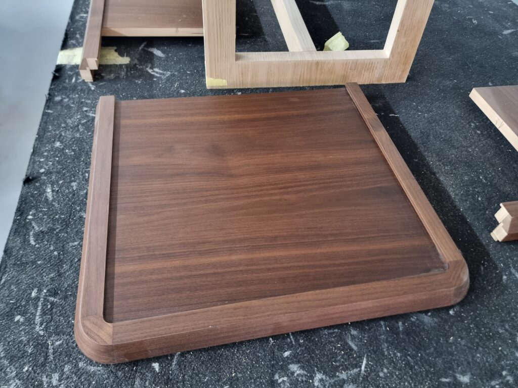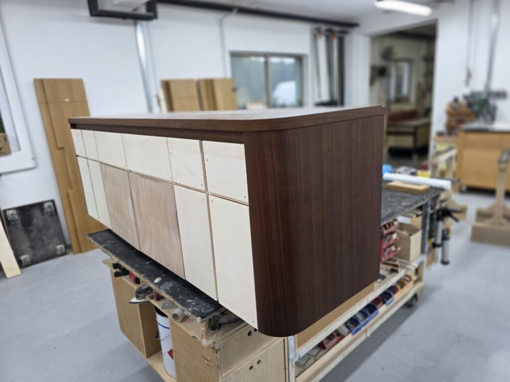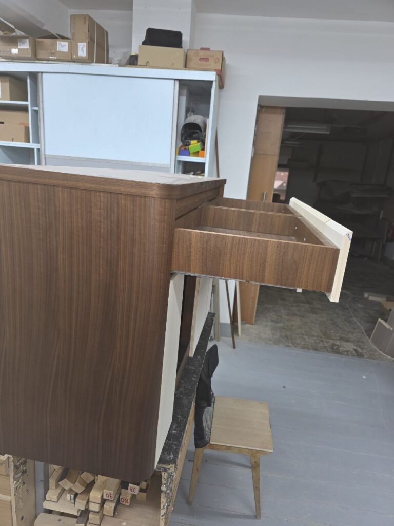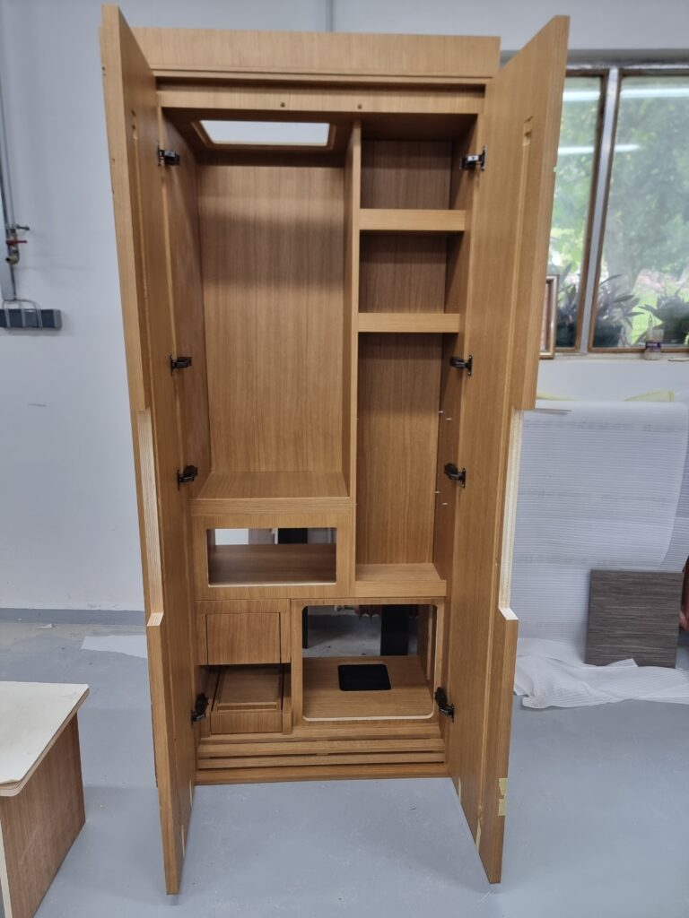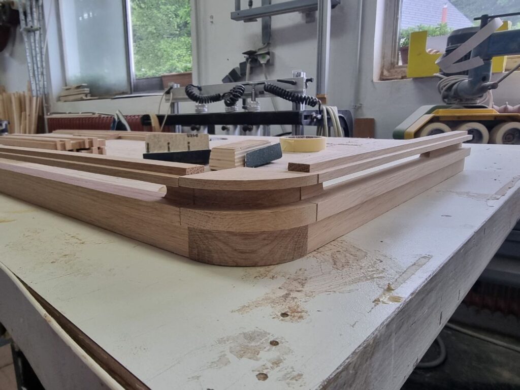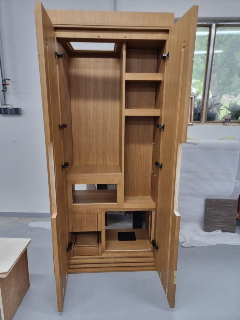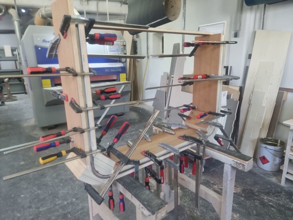 Proizvodnja pohištva za 50m barko. Material furnir oreh in hrast fornte pred pripravljene za tapeciranje in costum ročaje.