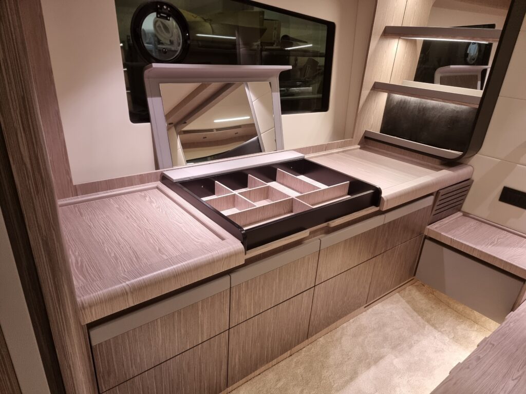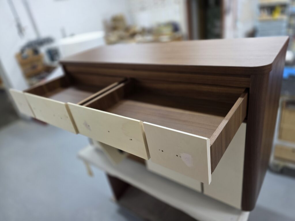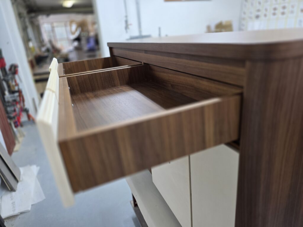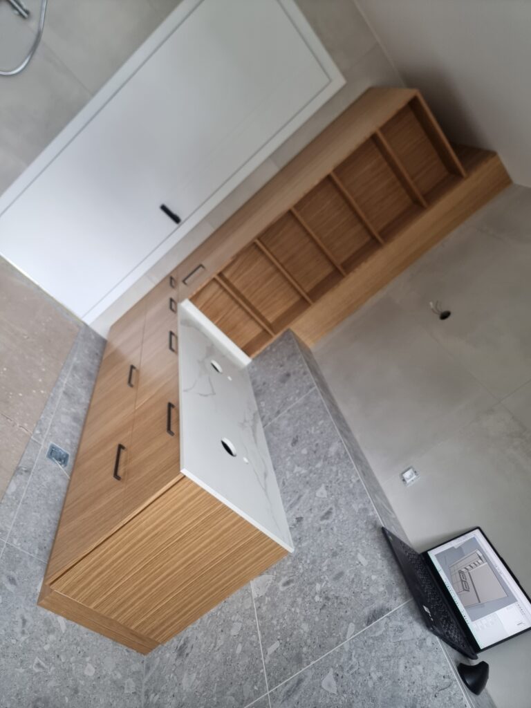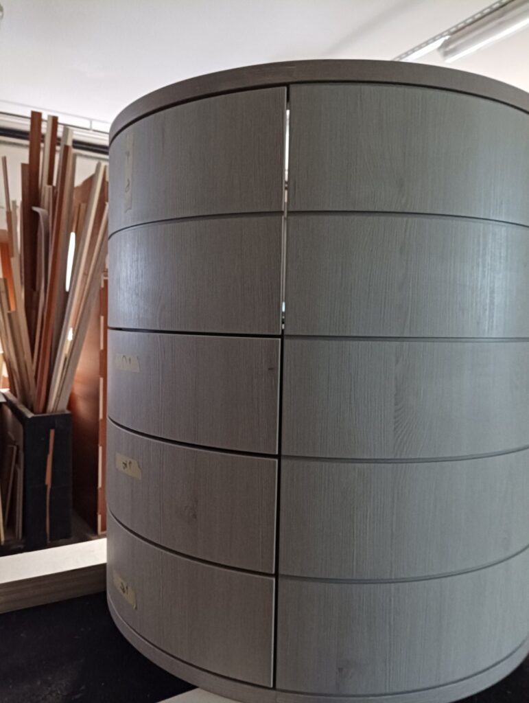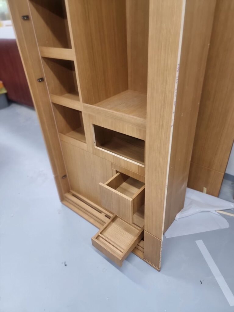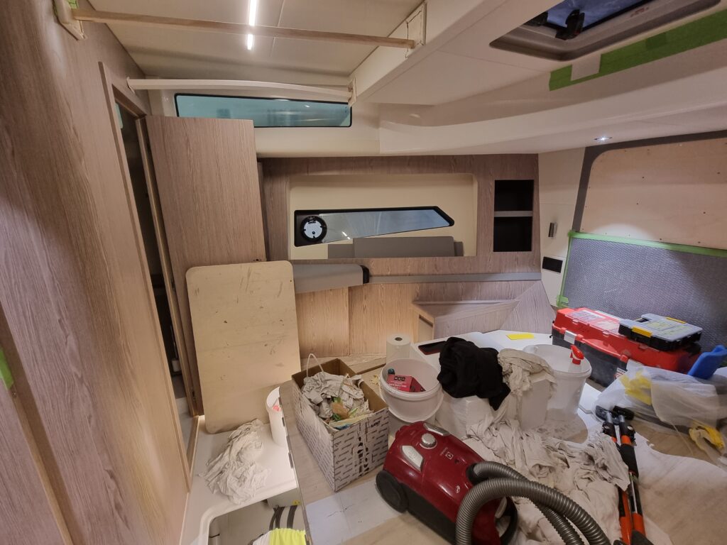 Proizvodnja pohištva za 50m barko. Material furnir oreh in hrast fornte pred pripravljene za tapeciranje in costum ročaje.